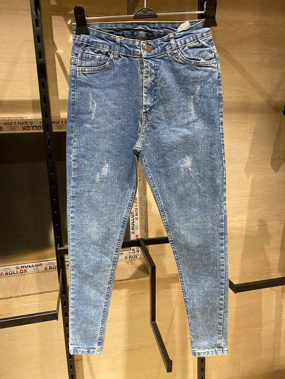 جین قد 90 جذب با پارچه فول کش بدون تغییر رنگ و ابرفت و زانو انداختن که سایز 30 تا 34 تجاری دارد که به سایز 34 تا 42 ایرانی اندازه میشه
