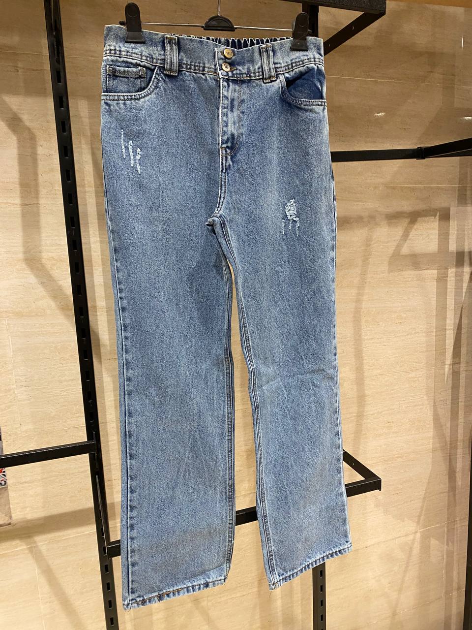 شلوار جین مدل واید رنگ بلوگری دو دکمه کد 1029