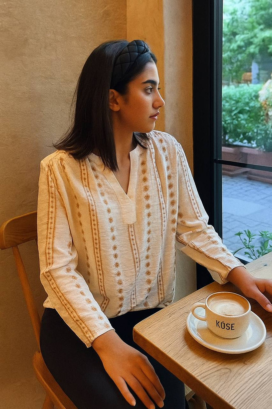 شومیز زنانه پارچه ابروبادی گلدوزی شده خنک آستین بلند